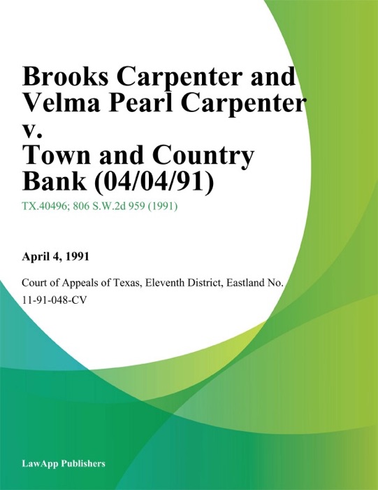 [DOWNLOAD] "Brooks Carpenter and Velma Pearl Carpenter v. Town and Country Bank" by Eleventh District, Eastland No. 11-91-048-CV Court of Appeals of Texas " eBook PDF Kindle ePub Free